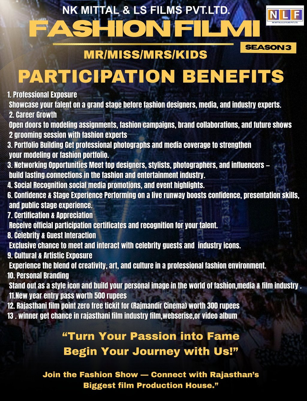 Whether you’re an aspiring model looking to launch your career or a fashion brand aiming to expand your presence, The Grand Fashion Show – Season 3 offers the perfect platform to connect, grow, and shine.